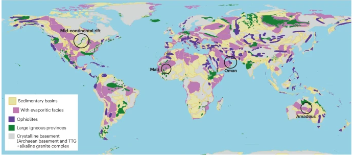 Глобальное распределение террейнов с высоким потенциалом водорода. Источник: Nature.com